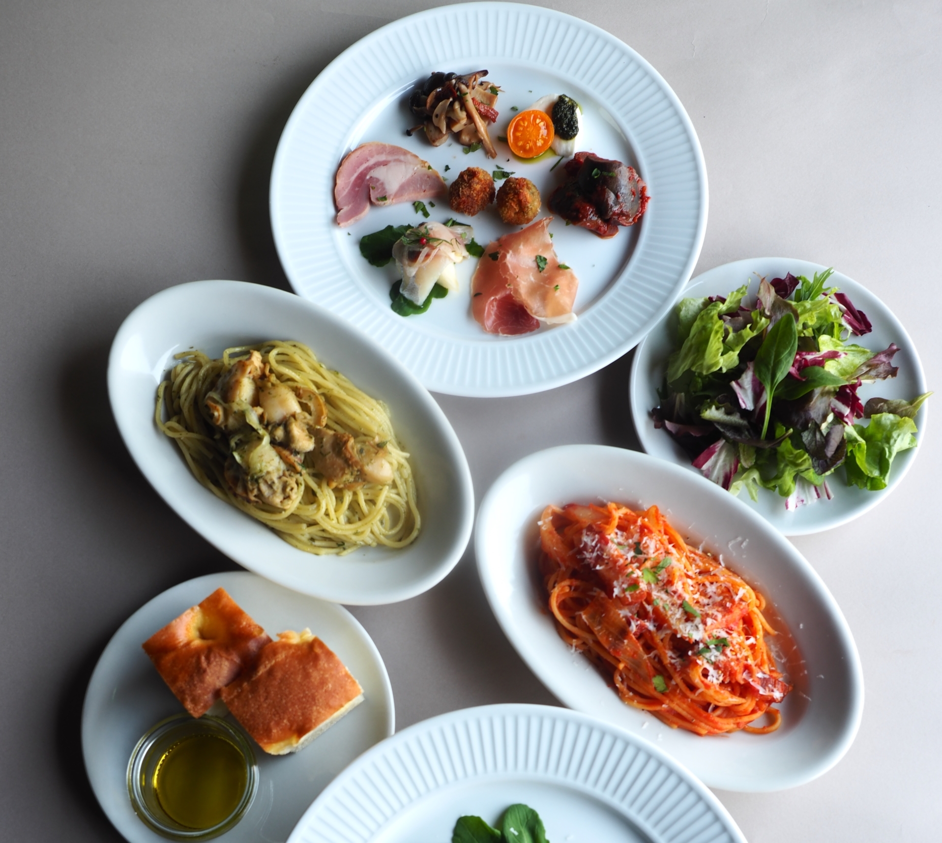 ※前菜、サラダとパスタは大皿でのご提供になります。