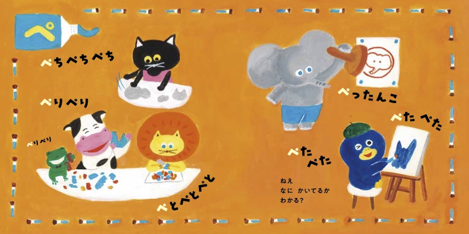 赤ちゃんにとって発音しやすい半濁音「ぱぴぷぺぽ」を、ペンタくんやネコ、ライオン、ゾウなどの仲間たちが見開きで楽しく紹介します。