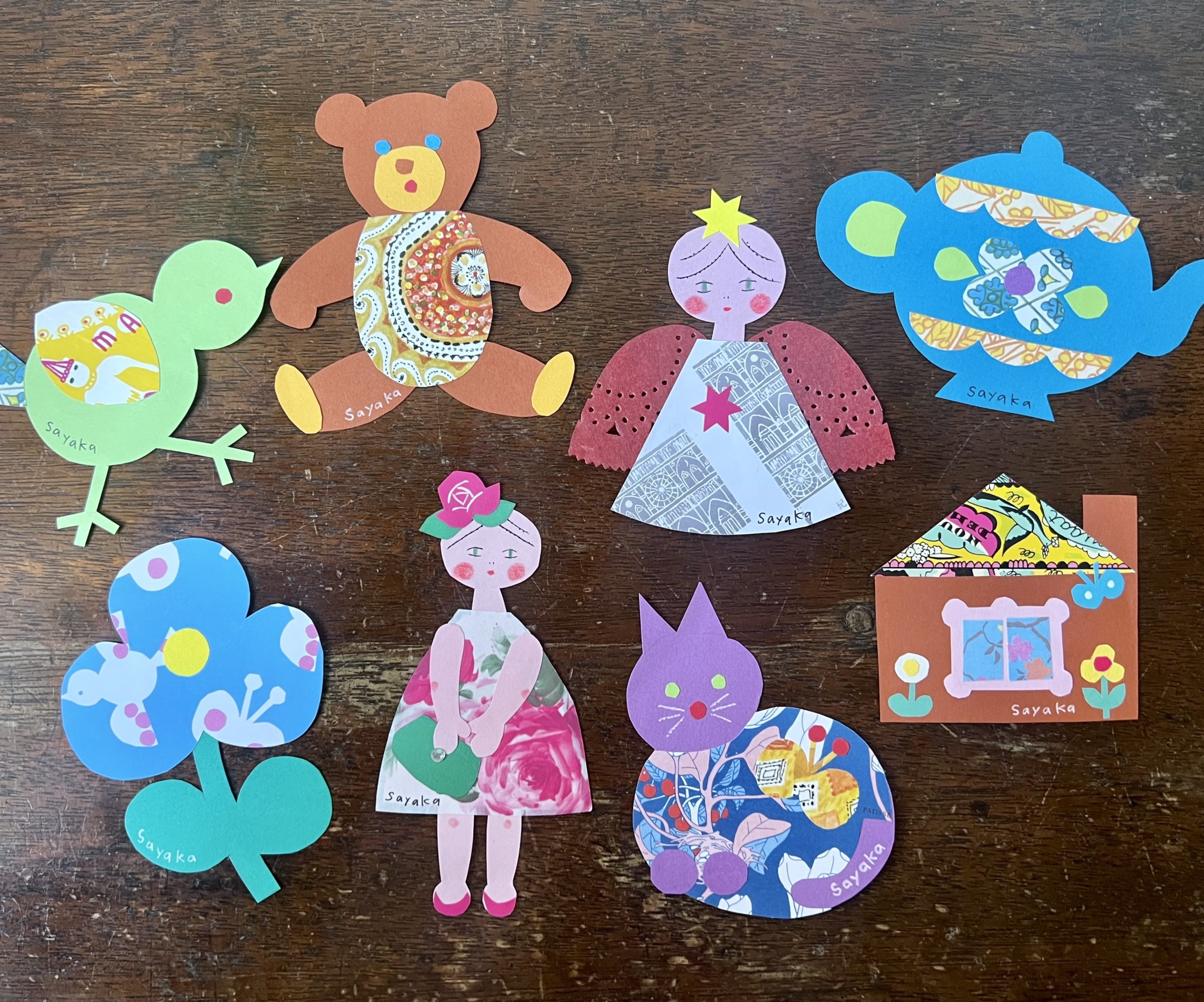 杉浦さんが描く可愛い女の子のリボンや洋服に、思い思いの包装紙をあしらって、可愛いカードやしおりを作ってみませんか?