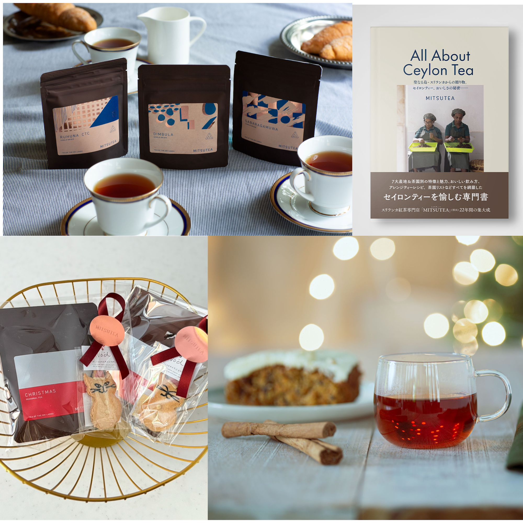 シングルオリジンのセイロンティーやクリスマスティー、ミトラカルナさんの焼き菓子、ギフトセット、MITSUTEAによるセイロンティーの専門書などをご用意してお待ちしております。みなさまにお会いできるのを楽しみにしております。