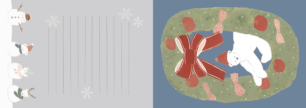 箔押しが施されたキラキラと輝く豪華な表紙を開けば、めくれどめくれどトビマツさんの世界に満たされる、まるで作品集のような幸せな一冊。現実には存在しないけれど、絵にするとどこか愛らしくて、「なんだこれ?」と笑ってしまうようなモチーフが、やわらかな線と淡い色合いで綴られています。ゆるやかに季節の流れも感じられる構成なので、その季節季節でお部屋にイラストを飾ったり、大切な人に手紙をしたためたり。レターブックといえど、もちろん手紙だけでなく、手帳デコ、ラッピング、雑貨づくりなど、使う人によって様々なアイデアが広がるのも楽しいところです。