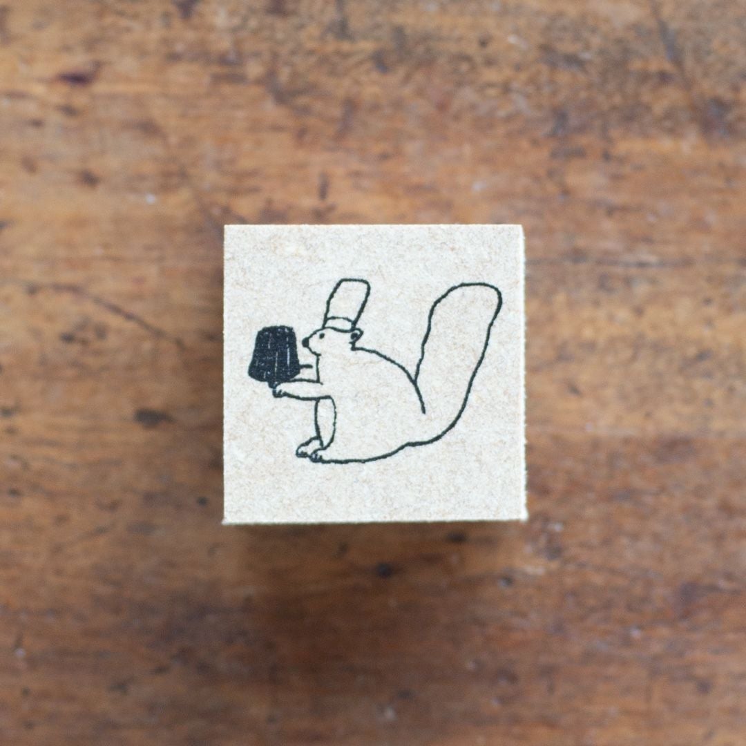 トビマツショウイチロウ|スタンプ「カヌレを運ぶリス(大)」