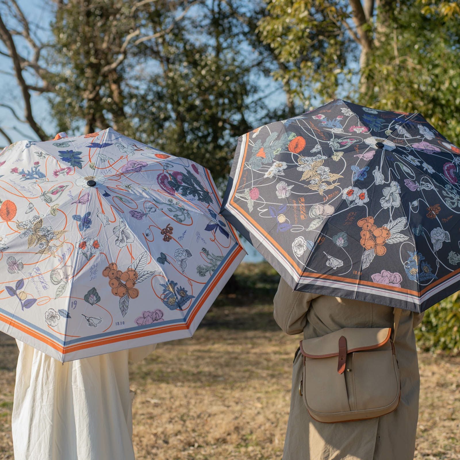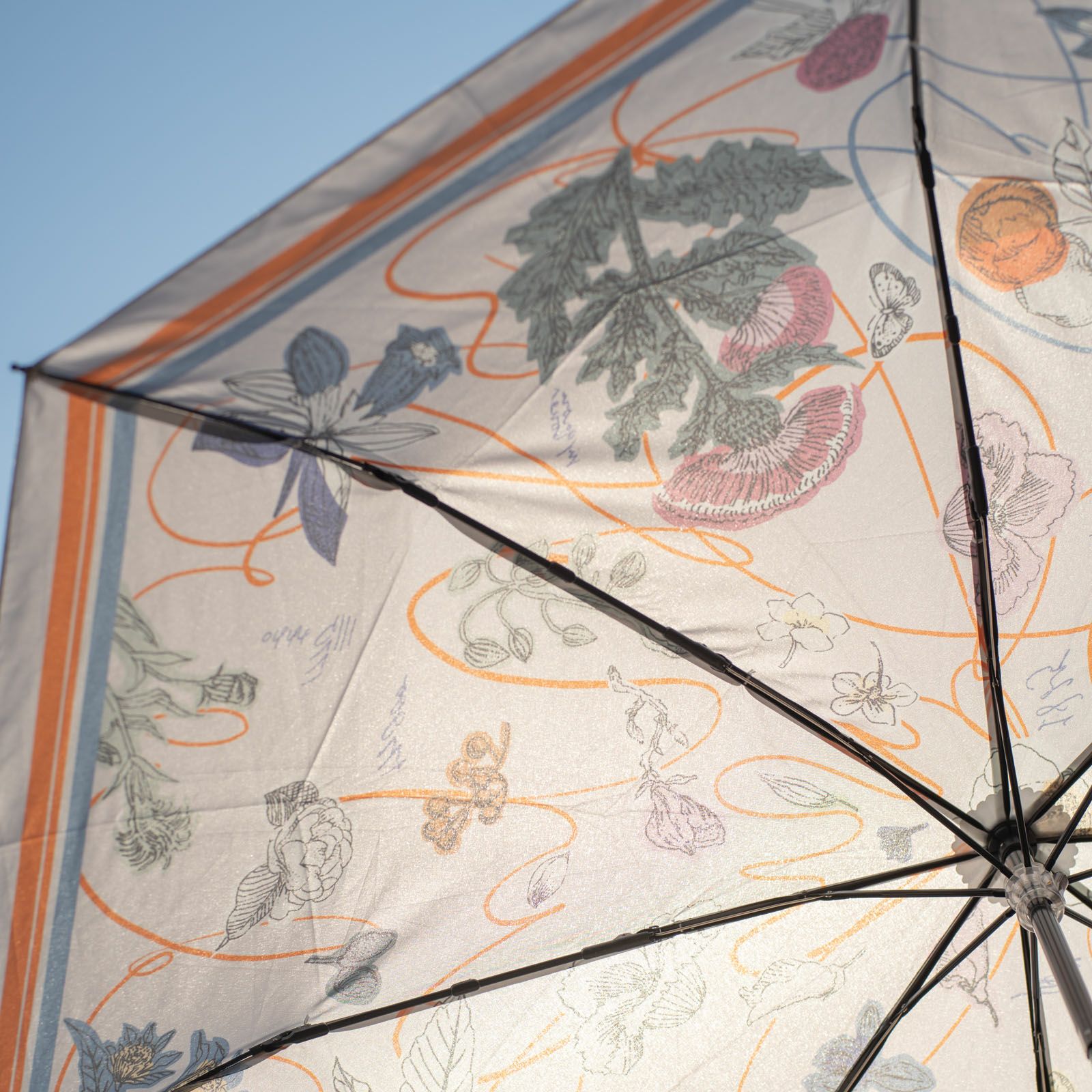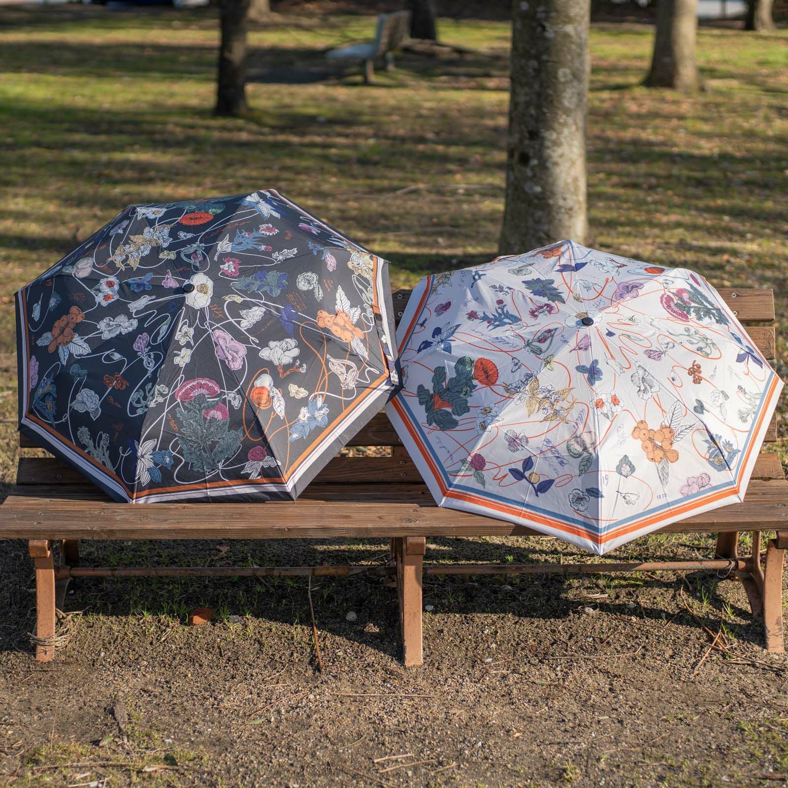 手紙社|いのうえ彩・晴雨兼用折りたたみ傘「植物図譜」(Beige)