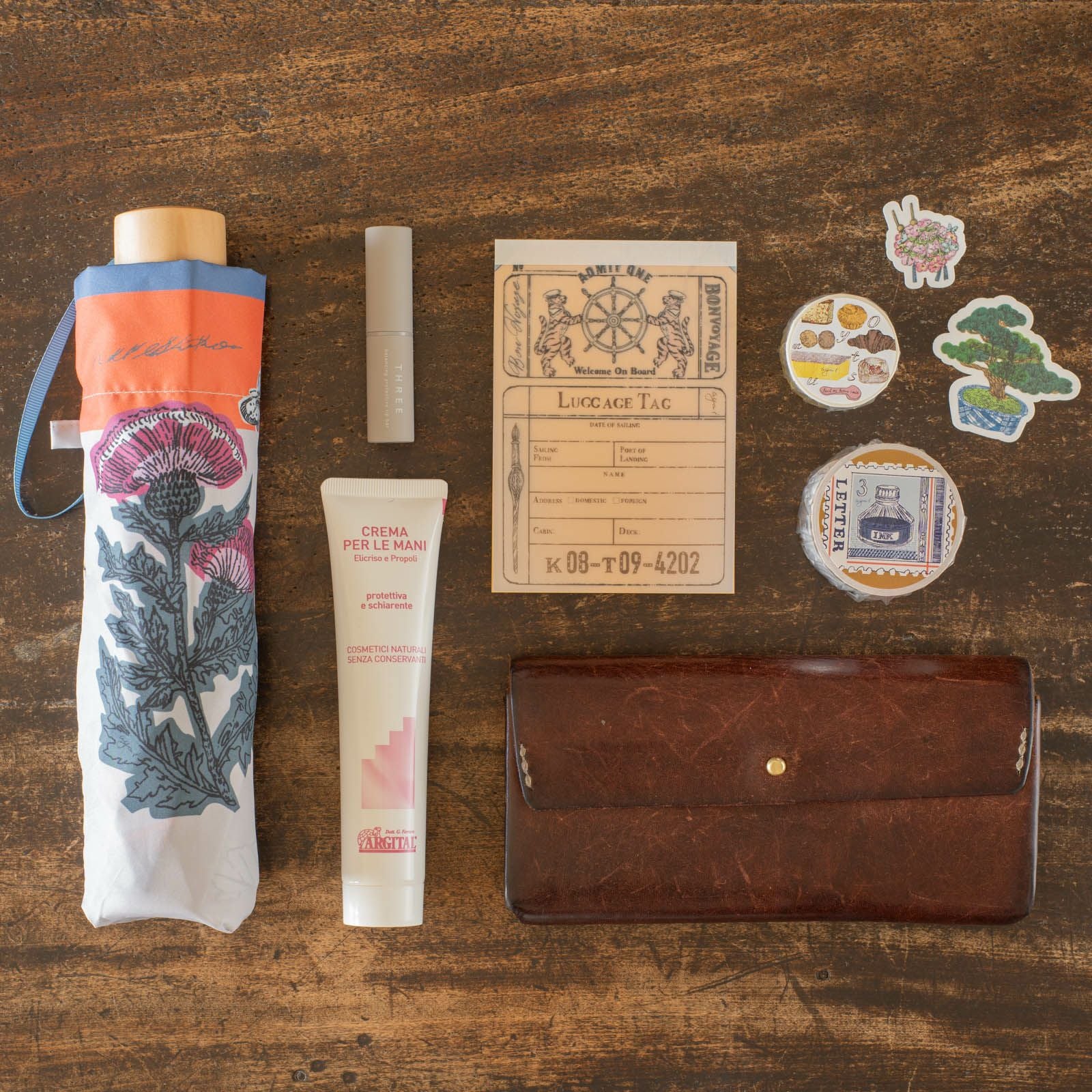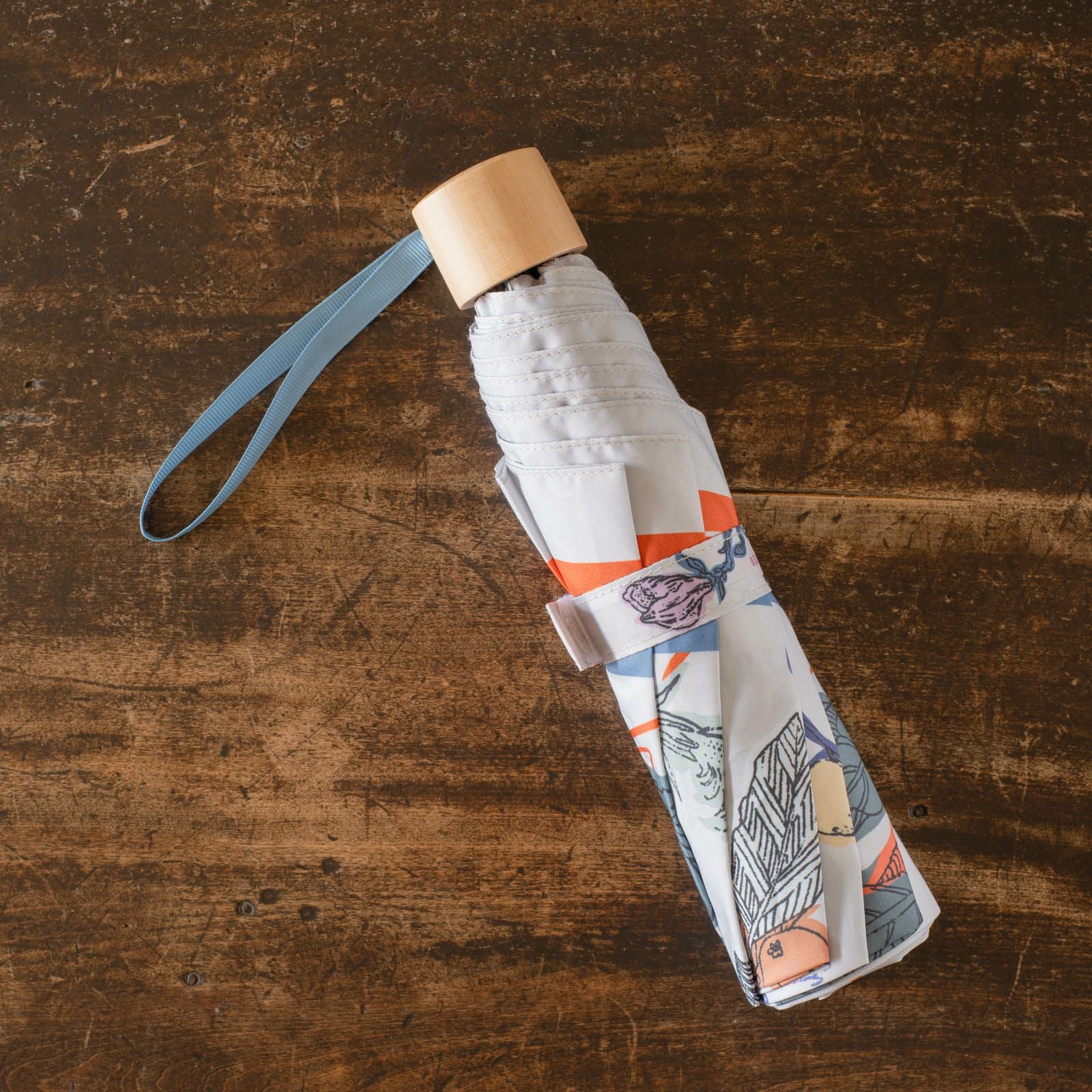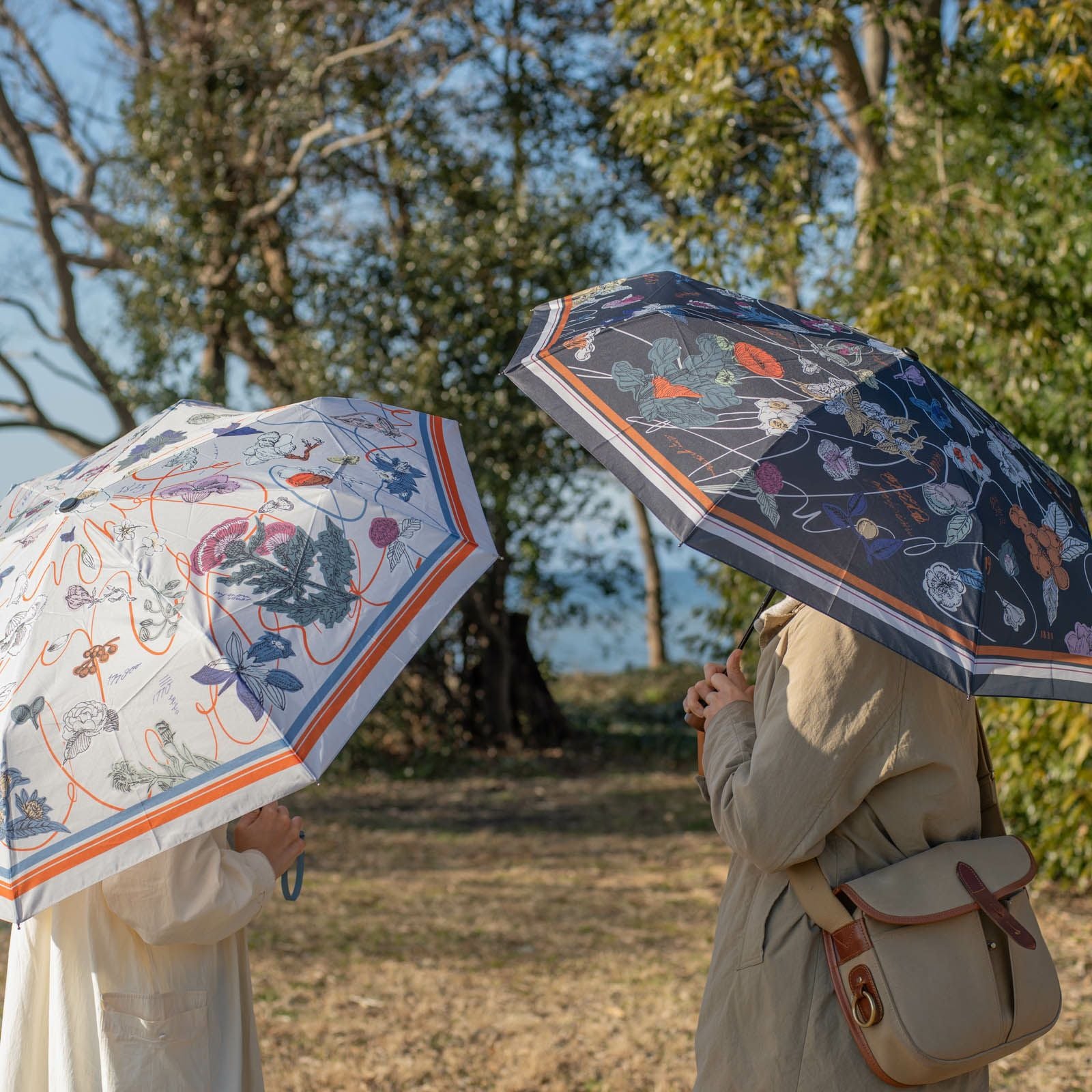 手紙社|いのうえ彩・晴雨兼用折りたたみ傘「植物図譜」(Beige)
