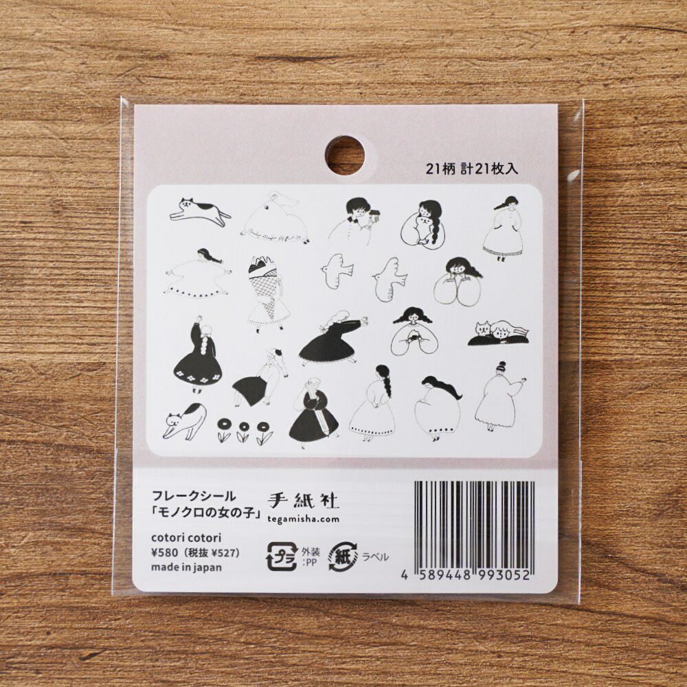 手紙社|cotori cotori・フレークシール「モノクロの女の子」