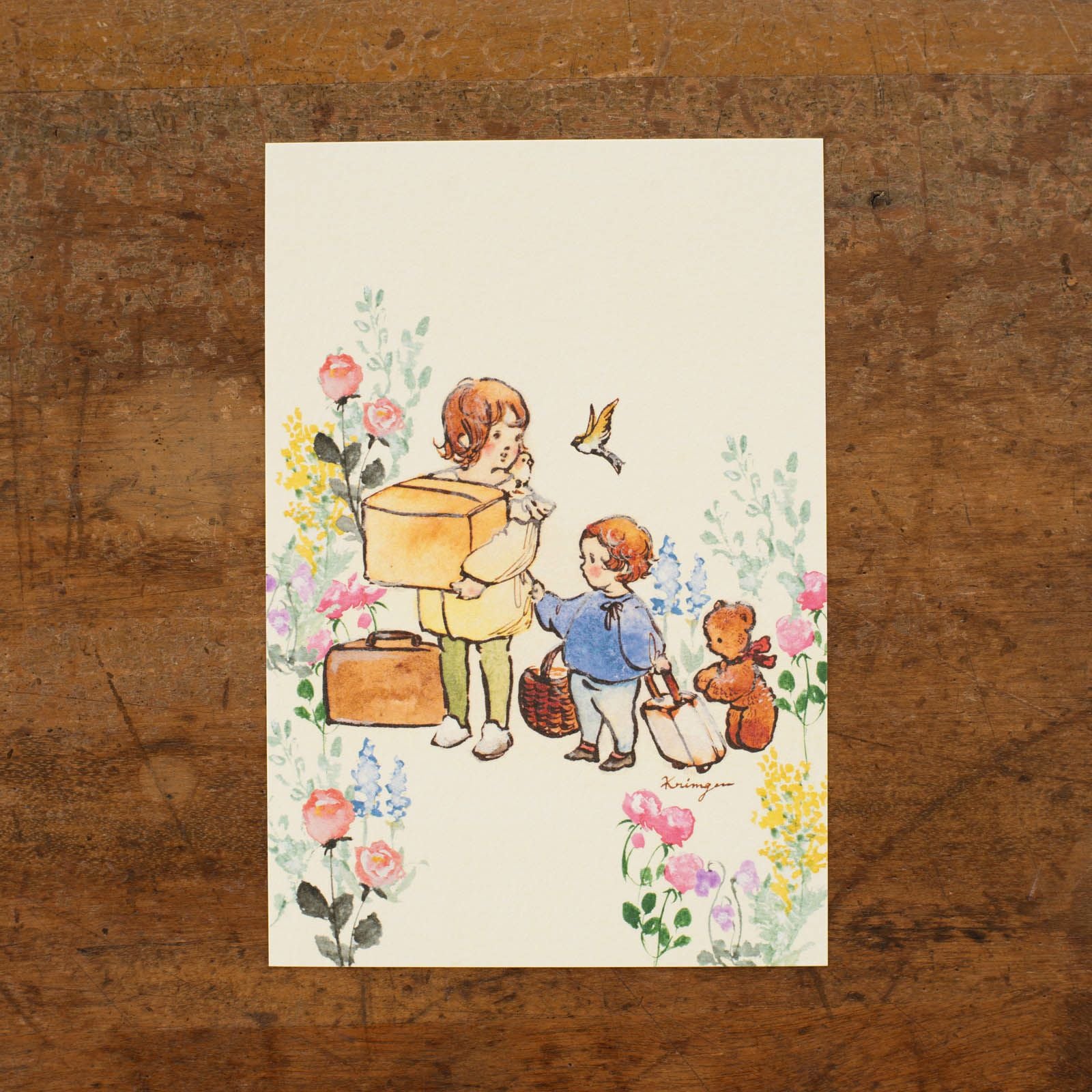 Krimgen|ポストカード「Three Kids Hiking」