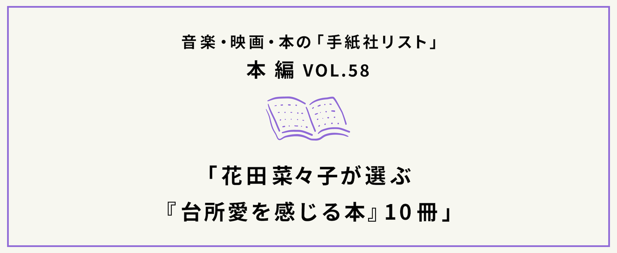 あなたの人生をきっと豊かにする手紙社リスト。今月の本部門のテーマは、「台所愛を感じる本」。その“読むべき10冊”を選ぶのは、ブックコンシェルジュや書店の店長として読書愛を注ぎつつ、私小説も人気を博している花田菜々子さん。「雰囲気こそ大事なのでは?」という花田さんが雰囲気で(いい意味で!)選ぶ、ジャンルに縛られない10冊をお届けします。