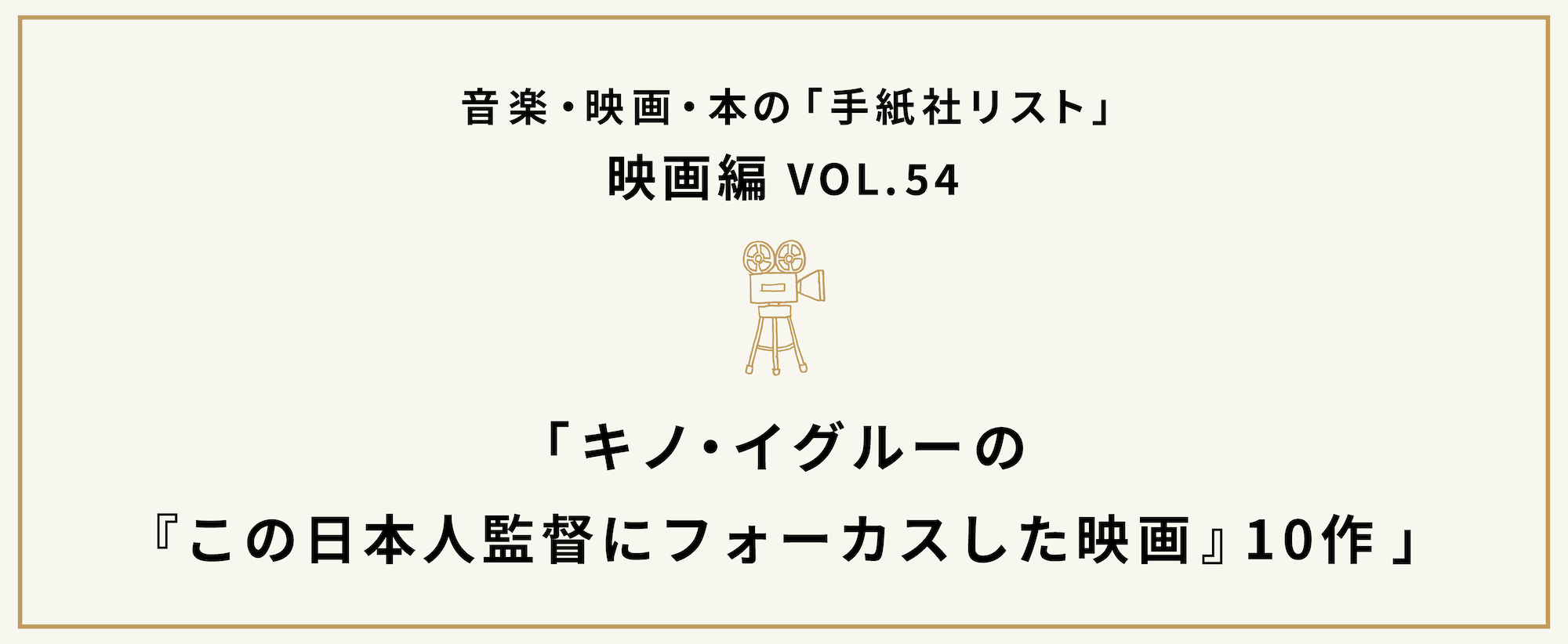 あなたの人生をきっと豊かにする手紙社リスト。今回は「この日本人監督にフォーカスした映画」を切り口に、それぞれが敬愛する監督をピックアップし、おすすめの映画を5本ずつ紹介します。その“観るべき10本”を選ぶのは、マニアじゃなくても「映画ってなんて素晴らしいんだ!」な世界に導いてくれるキノ・イグルーの有坂塁さん(以下・有坂)と渡辺順也さん(以下・渡辺)。今月もお互い何を選んだか内緒にしたまま、5本ずつ交互に発表しました!