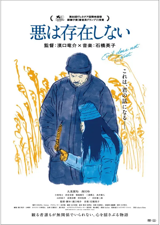 有坂:本当、そんな企画から始まってんの? っていうくらい、ゴリゴリの濱口ワールドの長編映画になっています。物語的には、長野県の田舎が舞台で、そこに暮らす、つつましく暮らしている親子が主人公なんですけど、その自然豊かな環境に、あるときグランピング場の設計計画が持ち上がった。そこを主導している会社というのが、コロナの煽りを受けて経営難に陥っている芸能事務所。そこが政府から補助金もらってグランピング場をつくると、何とかしてつくらないと会社が成り立たない。で、それを成り立たせるためにいろいろやっていくうちに、そこの川に汚水を流さないと成立しない。それを流そうとしているってことが分かって、その村に動揺が広がって、だんだんいろんなバランスが崩れていくっていう物語になってます。なので、これは、これまでの濱口作品の長編作品の中では、すごくストーリーラインもわかりやすいですし、そういう環境問題とかもテーマとして入っているので、わりと共感性も高い映画だなと思います。これまでと同様、会話の面白さは継続しながらも、これまで以上に長野の大自然が舞台ということもあって、ワンショット、ワンショットがとにかく美しい。あと、カメラワーク、森を歩いているところを横から移動撮影で撮るとか、そういう絵としての美しさみたいなのが、今までの映画以上に際立っている作品だったかなと思います。なんか、このセリフで出てくる言葉でいいなと思ったのが、「上にいる者の振る舞いが、すべて下の者に影響する」。それはもう、川の水の流れの話で、例え話で出ているんですけど、それは人間界に置き換えてもまったく同様のことで、やっぱり描いている世界以上に深いことをメッセージとして発信しているのが、濱口作品かなと思います。で、どんなふうに終わるのかなと思ったら、誰も想像できない衝撃のラストが待っています。