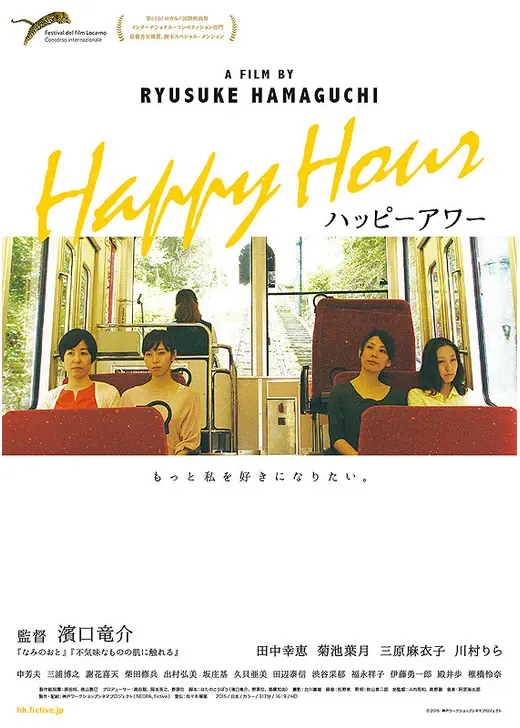 これは演技経験のない4人の女性が主人公なんですけど、内容的にはごく普通の30代後半の女性たちが抱えている不安とか、悩みみたいなものを、317分で描く。「成立するのかそんな映画?」って思うんですけど、これがまた商業映画ではないんですけど、でもね、渋谷のイメージフォーラムで公開されたときに、ついに濱口さんブレイクしたなっていうくらい、もうね、どの回もソールドアウトみたいな大人気になっていた。ブレイク前夜の作品が、この『ハッピーアワー』かなと思います。で、この今映ってる、このケーブルカーに乗っている4人の女性が主人公なんですけど、この4人は30代超えても仲が良くて、何でも話せる親友同士と思っていたら、そのうちの1人が、みんなに内緒で離婚協議を進めていたと。別に、それは夫婦の話なので伝える義務もないんですけど、そういうことを離婚協議を進めてるんだよねと言ったら、そこから親友同士だったはずの4人の心のバランスが崩れていくんですね。誰かの秘密がきっかけで、その矢印を自分に向けると、自分の中にもいろんな不安だったりみたいなものがあって、じわじわじわじわ、そういった不安とか悩みとかが広がっていって、静かに不協和音が広がっていくと。で、後半ラストに近づくにつれて予想外の事態がどんどんと発生していくという、スリリングな展開になっていく。そういった意味では、さっき紹介した『親密さ』よりも、『ハッピーアワー』の方が観やすい、物語としてはすごく分かりやすいつくりになっているので、観やすさはあると思いますけど、とはいっても5時間超えの映画となっています。これも、僕は観た瞬間、ベスト1決まってしまったっていうぐらい、その年もぶっちぎりベスト1。実際、海外でも評価されて、スイスのロカルノ国際映画祭、主演4人が最優秀女優賞を獲得した。