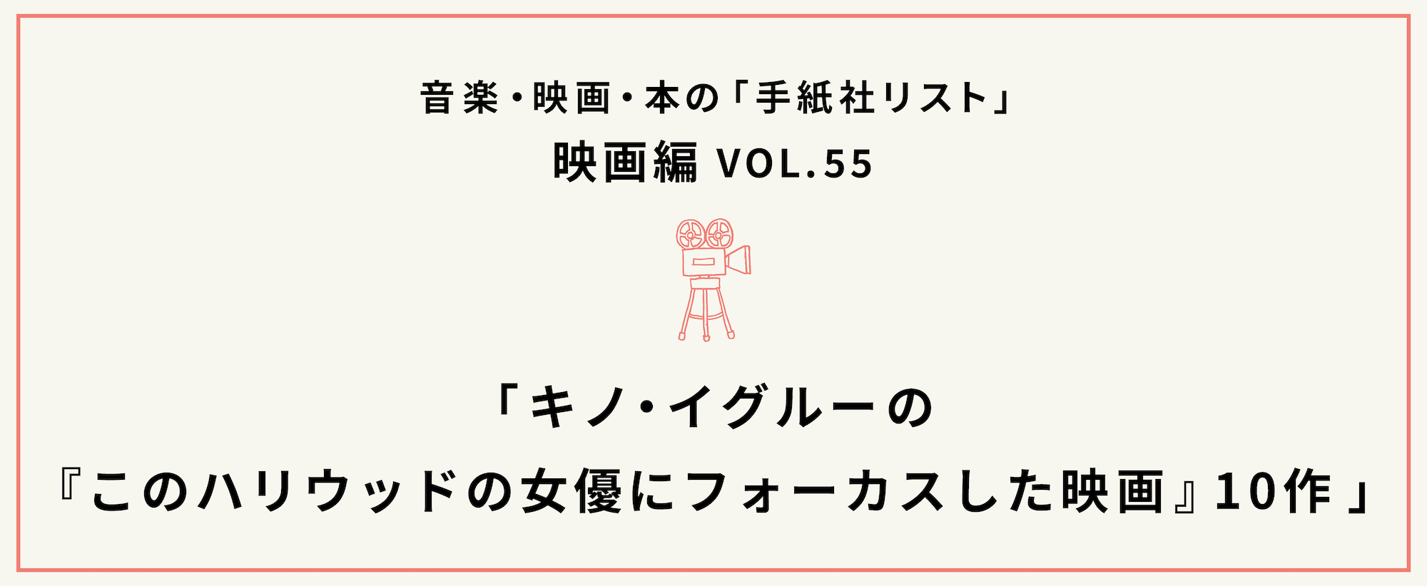 あなたの人生をきっと豊かにする手紙社リスト。今回は「このハリウッドの女優にフォーカスした映画」を切り口に、それぞれが一人の女優をピックアップし、おすすめの映画を5本ずつ紹介します。その“観るべき10本”を選ぶのは、マニアじゃなくても「映画ってなんて素晴らしいんだ!」な世界に導いてくれるキノ・イグルーの有坂塁さん(以下・有坂)と渡辺順也さん(以下・渡辺)。今月もお互い何を選んだか内緒にしたまま、5本ずつ交互に発表しました!