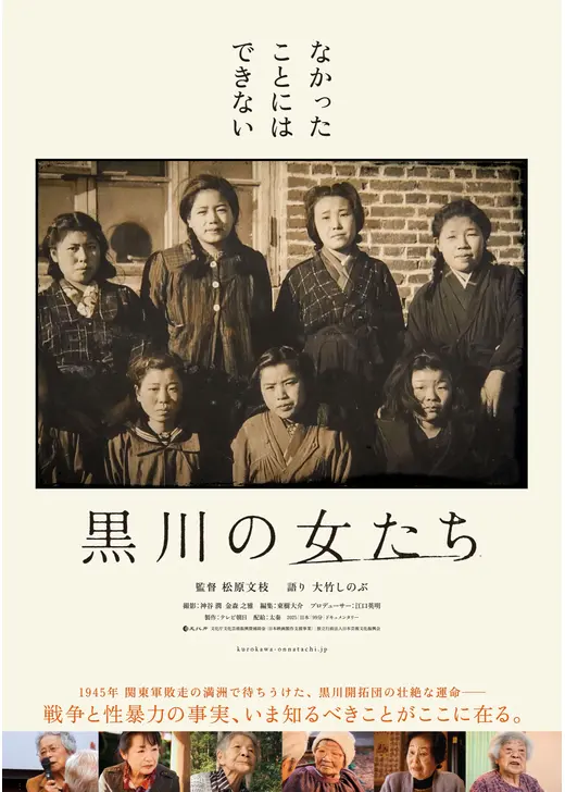 渡辺:もう、割とゴリゴリなドキュメンタリーな感じですね。これは、今年の夏に公開されたんですけど、一言で言うと戦争ものになるのかな。今年が終戦80年の年だったので、そこに公開されるっていうのも意味があったんだろうなと思う作品なんですけど。どういう作品かというと、日本が戦時中、中国の満州と言われていた地域に、すごく、なんって言うんですかね、移民じゃなくて入植していたんですよね。日本にとって進出していく拠点の場所になっていて、なので、軍隊だけではなくて、ちゃんと住民をそこに送って、村をつくって、ちゃんと拠点にしていこうと、そういう戦略のもと、満州の地域にいろんな日本人の村が当時できました。もともとそこの地域に住んでた人たちを追い出して、日本人が村をつくっていたみたいな状態になります。日本が戦争でだんだん不利になってきて、ソ連が攻めてきて、日本軍は一旦撤退するんですね。撤退したときに、残されたのが日本人村の人たちになります。で、いろんな日本各地から行っていたんですけど、いろんなやっぱり、もともと日本のある村の人たちがそのまま移住するというようなものを取っていたので、この黒川という日本の地域の人たちが移民したところだったので、黒川の村の人たちが、そのまま満州でも村をつくっていたという状態なんですけど、ソ連軍が攻めてきてソ連軍に囲まれて、そうすると満州のもともと追われた人たちも戻ってくるので、もう殺されるのを待つばかりみたいな、そういう状況だったそうです。なので、本当に村をまた取られてしまった日本人がいたりとか、それを恐れて集団自決をする人たちがいたりとか、という、村々でいろんなそれぞれの判断があって、自決するとかが多かったみたいなんですけど、この黒川の人たちは生き抜こうと決めて、それの手段として選んだのが、ソ連兵に和解を申し入れて、その条件を聞くということだったんですけど、そのソ連兵の言った条件というのが、女性を差し出せということだったんですね。黒川の村の人たちは、もうそこは生き抜くと決めて、既婚者以外の若い女性に、「頼むからちょっとみんなを救うと思って、接待という名前でソ連兵のもとに行ってくれ」というので、若い女性たちに接待をさせて、それでなんとか生き延びたというのが、この黒川の村の人たちの話になります。結果、生き延びることができて、みんな日本に帰ってくることができたんですけど、そのときに犠牲となってみんなの命を救った黒川の女性たち、特に若い女性たちなんですけど、みんなで日本に帰ってきたときに待っていたのが、誹謗中傷の嵐っていうですね。みんなの命を救うために自分たちが犠牲になったのに、帰ってきたら誹謗中傷を受けるっていうですね。さらに、とんでもない目に遭うっていう、そういう人たちのドキュメンタリーになります。今はもうみんな、おばあちゃんなんですけど、あるとき、数年前ぐらいだと思うんですけど、そのときにみんなのために犠牲になって、その後、誹謗中傷を受けたから、みんな村を離れて名前を変えたりとか、過去を隠してずっと生きてきた人たちが、おばあさんになって、「やっぱりこのまま黙っていられない」ということで、カミングアウトし始めたんですね。その人たちが、黒川の人たちが何人も同時に、実はみんな連携して連絡は取り合っていて、仲間として違うところに住んでるんだけど、連絡は取り合っていたみたいな。その人たちが次々とカミングアウトし始めたんですよね。それが話題になって、「実は、こんなことがあったんだ」っていうのがニュースになっていったっていう。それを追ったドキュメンタリーなんですね。もう、おばあさんになってるんで、新しい家族もいて、孫もいたりするんですけど、そういう中で、「実は自分、過去はそうだった」っていう、ものすごい勇気を持って告白をしたんですけど、なんかすごい感動するのが、孫の女の子っていうか、もう大人にはなってるんですけど、孫がおばあちゃんに「言ってくれてありがとう」みたいに、めちゃくちゃ受け入れて、それをポジティブにもっと発信した方がいいみたいな。そういう環境になれているっていうことだったりとか、やっぱり黙ってるのは良くないみたいに、立ち上がる女性たちみたいな。そういうのがしっかり描かれていて、本当に観ていて感動するし、涙すら出てくるっていう。強いおばあちゃんたちと、それを肯定的に支えている家族とかっていうのが、ものすごい感動できる作品だったりするので。そんなことがあったのかっていう、戦争の知られざる悲劇みたいなところっていうのは、こういうのが表に出ることで、やっぱり戦争って良くないんだなとか、戦争によって結局一般の人が一番被害を受けるので、そういったことがしっかり描かれているドキュメンタリーなんで、ちょっと過酷な部分を描いているテーマではあるんで