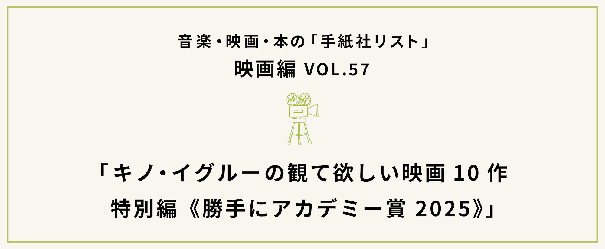 あなたの人生をきっと豊かにする手紙社リスト。今月の映画部門のテーマは、1年を振り返る恒例の特別編「勝手にアカデミー賞!」です。2025年に公開された最新作の中から《主演俳優賞》、《助演俳優賞》、《ドキュメンタリー賞》、《アニメ賞》、《音楽賞》の5つの部門の受賞作品・俳優を勝手に選んでみました! その選考をしてくれるのは、マニアじゃなくても「映画ってなんて素晴らしいんだ!」な世界に導いてくれるキノ・イグルーの有坂塁さん(以下・有坂)と渡辺順也さん(以下・渡辺)。今月も、お互い何を選んだか内緒にしたまま、交互に発表しました! さぁ、二人はどんな作品や俳優を選ぶのか、ぜひご覧ください。