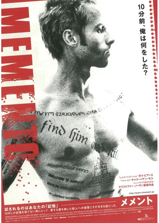 渡辺:この『メメント』、特徴的なのは、時間軸をめちゃくちゃいじっています。どんどん過去に遡っていく、そういう時間軸の編集というのが、特徴の作品になります。主人公は、妻が殺されてその犯人を追うというお話なんですけど、記憶障害のため、10分間しか記憶がもたないので、少し前のことを忘れてしまうので、それを自分の体にタトゥーを入れたりとかして、それで過去の何があったのかっていうのを遡っていくという、そういうサスペンスになるんですけど。もう本当にこれ低予算なんだけど、アイデア勝負で、時間軸を編集で見事にいじって見せ切るサスペンスというところなので、かなり初期から予算がなくても、本当にアイデアと、いい編集力とか、監督力があれば面白い作品つくれるんだというのを、見せ切ってくれた作品だなと思います。というので、まずノーラン1本目は『メメント』です。